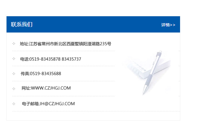 傳真:0519-83435688    郵編:213135    網址:WWW.czjhgj_com.km138.com    電子郵箱:JH@czjhgj_com.km138.com